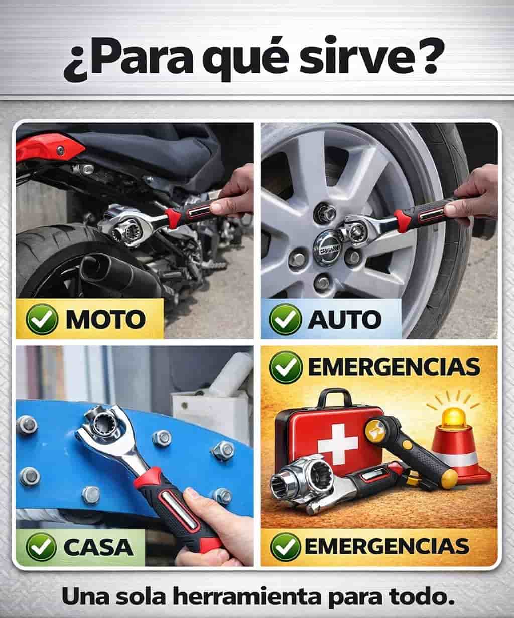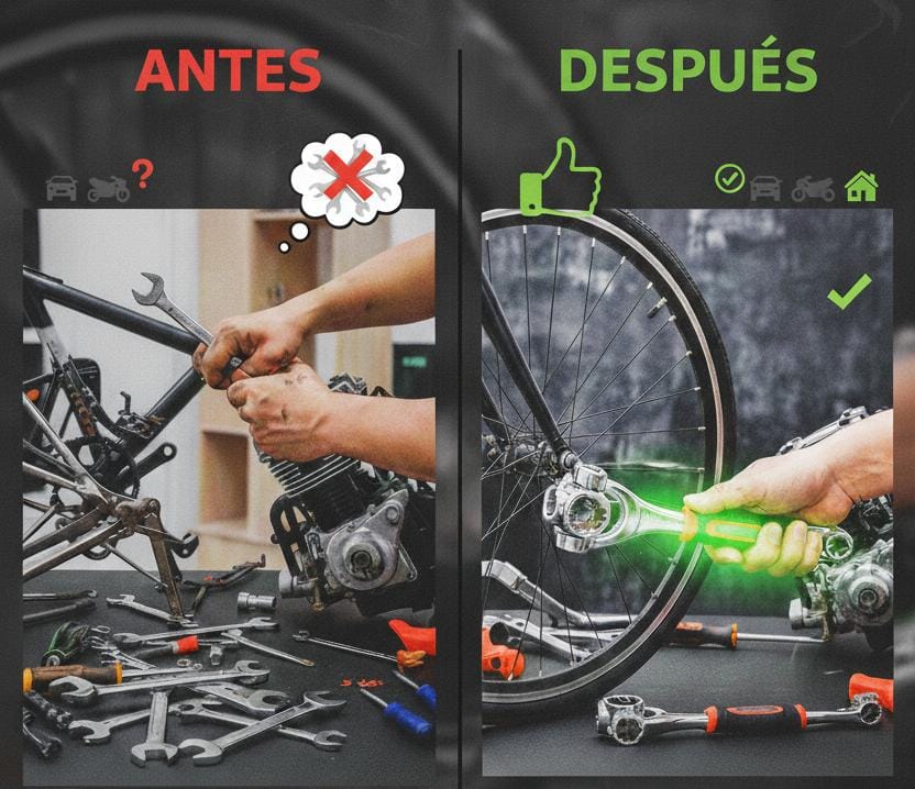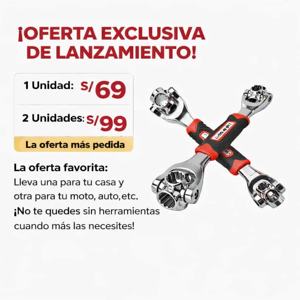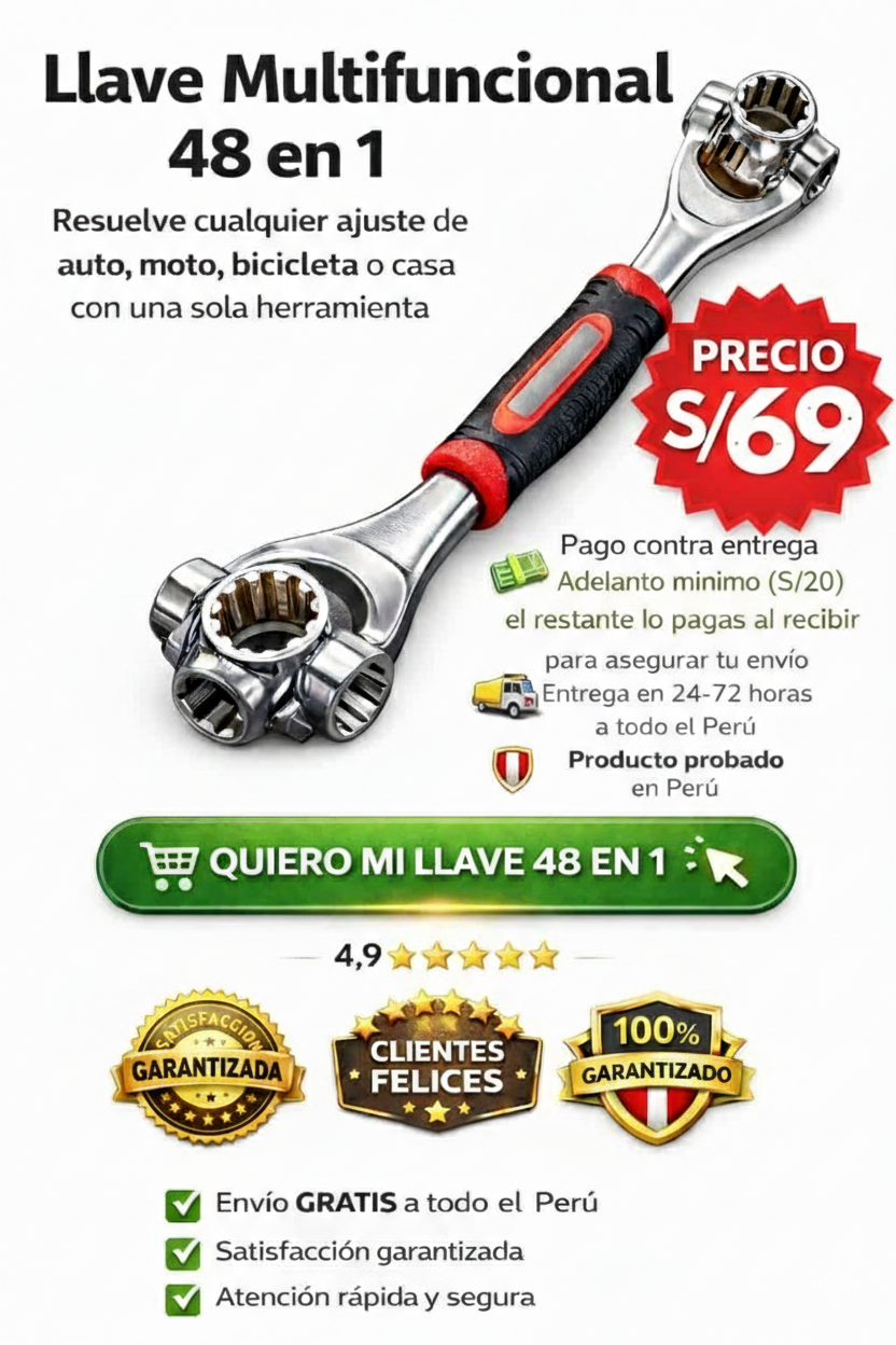 👉 La llave 48 en 1 combina múltiples medidas en una sola herramienta, permitiendo ajustar tuercas y pernos de distintos tamaños sin necesidad de cambiar de herramienta.
